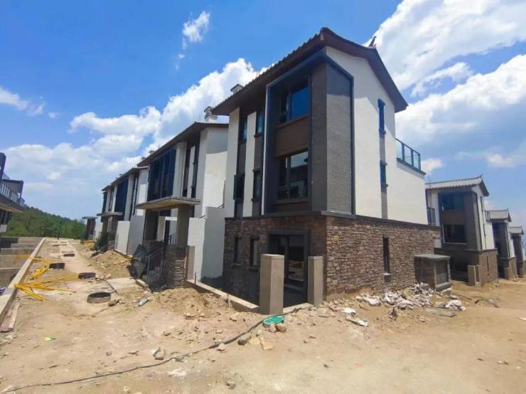 8栋砌体完成,内墙抹灰完成,外墙抹灰完成,外架拆除完成,屋面防水完成,庭院防水完成,露台防水完成,门窗收口完成,厨卫防水完成100%,抹灰收尾完成,楼层清扫完成。二层、三层门窗安装完成70%;外墙保温砂浆完成100%、抗裂砂浆完成100%;腻子粉完成98%,涂料完成98%;屋面瓦施工完成;文化石完成100%,小青砖完成100%,EPS线条完成100%。成品滴水线完成100%;镂空瓦完成100%。室外雨污水管网完成100%。室外给水管道完成100%;室内给排水、二配安装完成。
