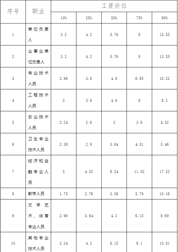 大理州2021年人力资源市场工资价位及行业人工成本信息