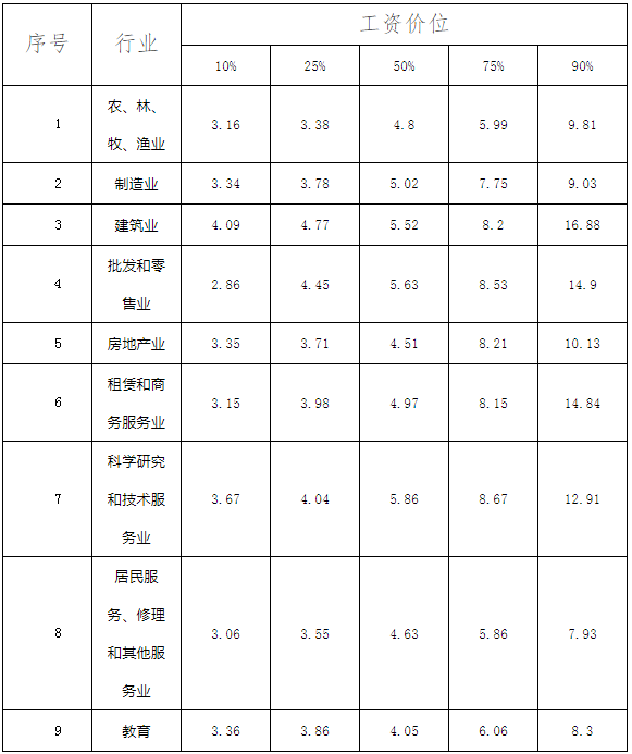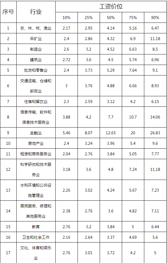 1.分行业企业从业人员工资价位