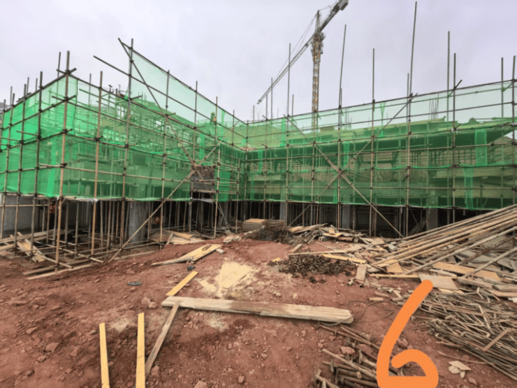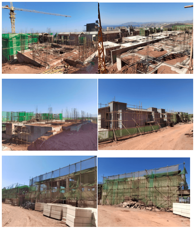 6栋砌体完成,内墙抹灰完成,外墙抹灰完成,门窗收口完成100%;门窗安装完成100%;玻璃安装完成70%;外墙腻子完成,外墙平涂漆完成,真石漆完成,栏杆安装完成100%;露台防水层施工完成70%,屋面防水完成,屋面瓦施工完成100%。室外雨污水管网完成100%。室内给排水、二配安装完成。