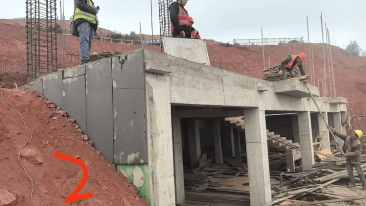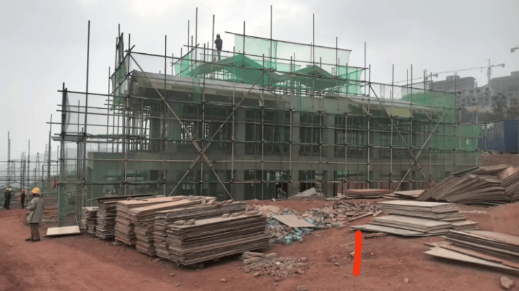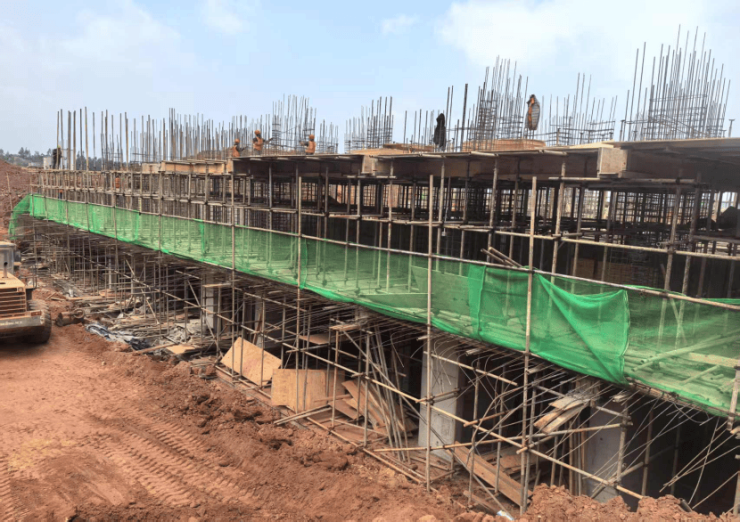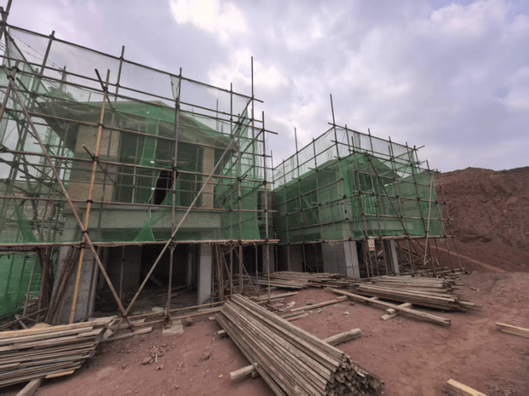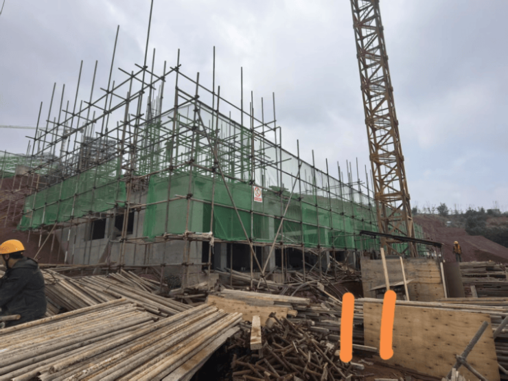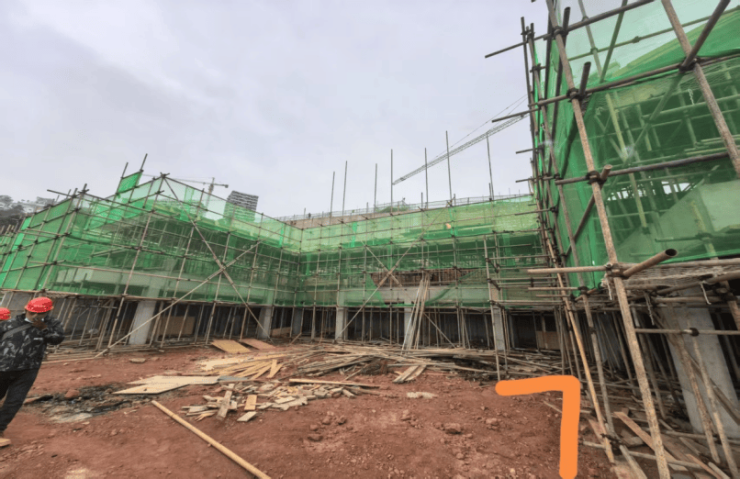 2#楼完成主体一层混凝土浇筑,3.030米处模板支撑体系搭设施工中。