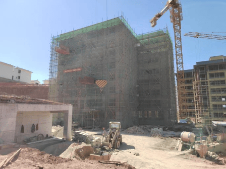 26#楼主体结构完成,内外墙砖砌体完成30%,