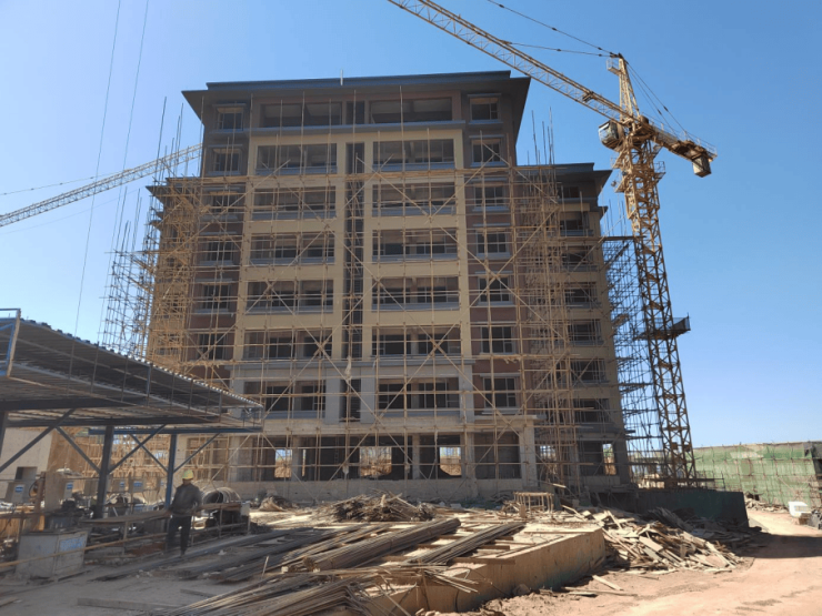9#楼第一台一层结构完成,第二台基础结构完成;