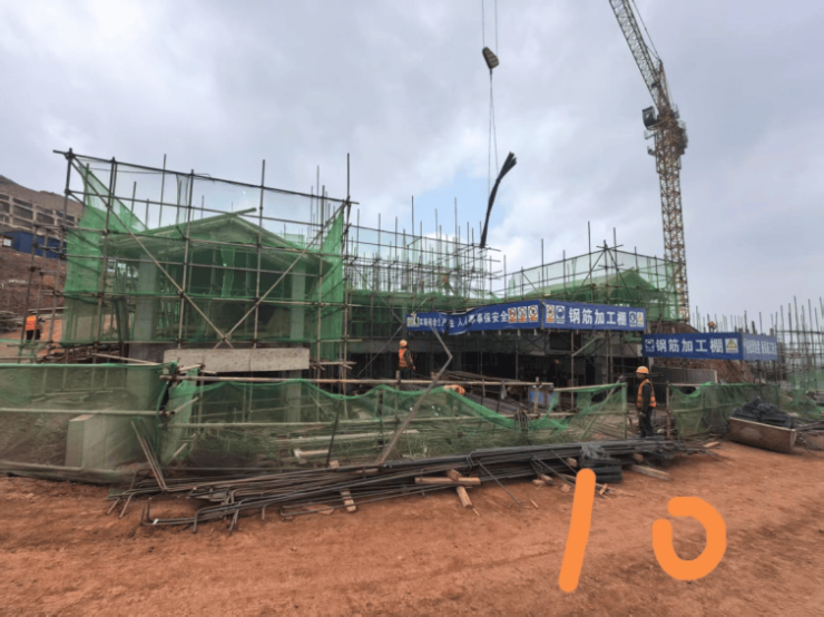 10#楼完成主体二层顶板6.180米处板混凝土浇筑工作。