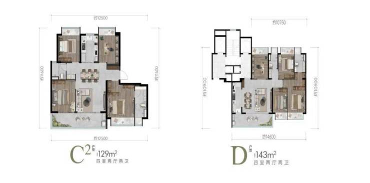 3、产品:2梯2户,电梯独立入户,115-143平米户型,均为大三房以及大四房产品;