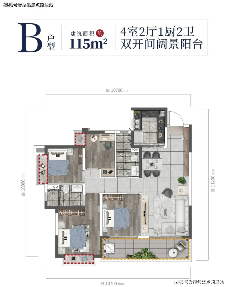 小高层户型:建面约88-115㎡,涵盖三室两厅一卫、三室两厅两卫,均价约7400元/㎡起。