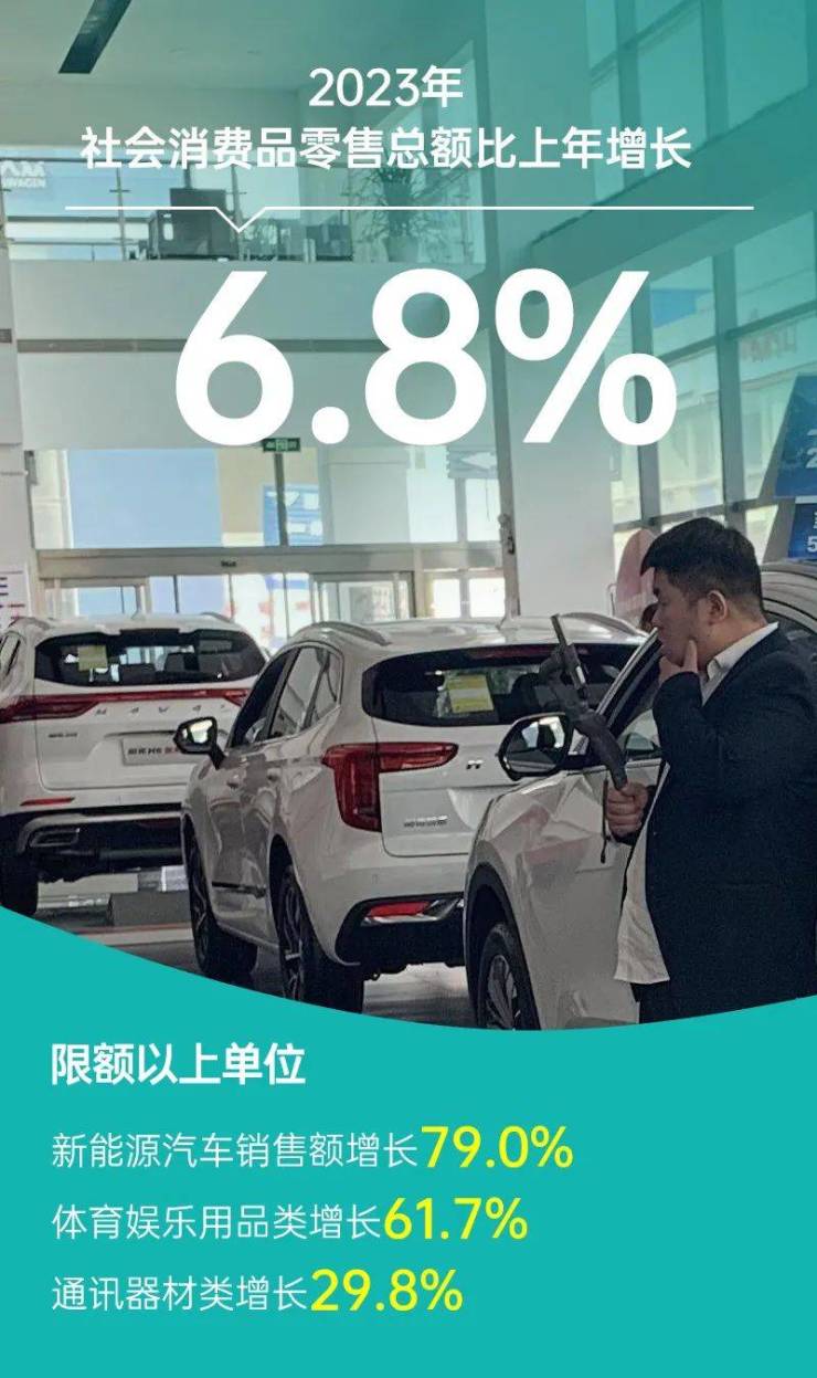 升级类消费较快增长,限额以上单位新能源汽车、体育娱乐用品类、通讯器材类分别增长79.0%、61.7%、29.8%。