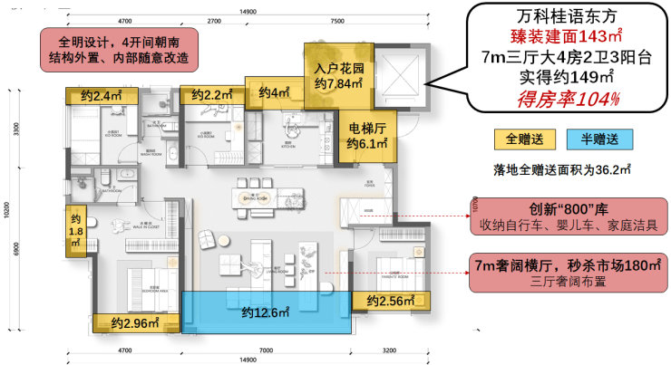 面积定位:改善 约110㎡-190㎡(主打高得房率)