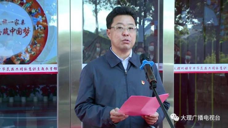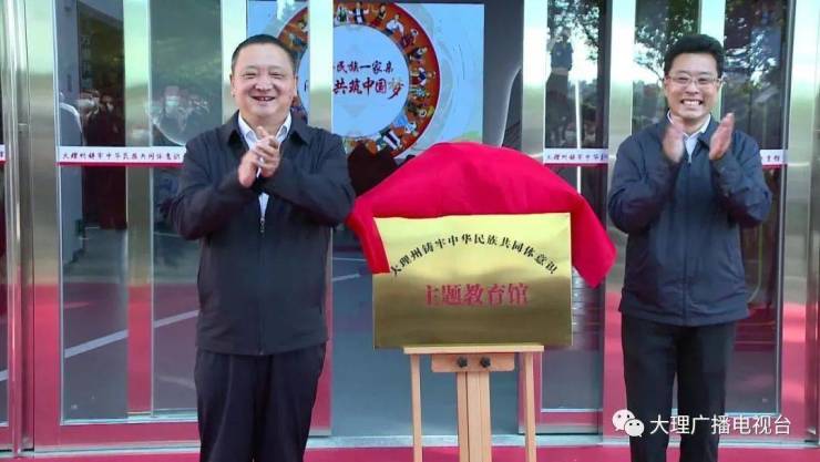 州委书记杨国宗出席仪式并讲话,大理大学党委书记李涛致辞,并共同为大理州铸牢中华民族共同体意识主题教育馆揭牌。州政府副州长鲁旭俊主持仪式。