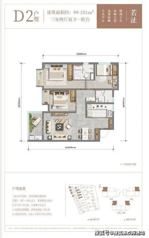 占地面积约161.72亩,分为D1-D4四个地块开发,容积率4.5,建筑密度27%,绿地率40%,覆盖29栋住宅(47.56万方),4000平商业、一所18班幼儿园。采用2T4板楼设计,南北通透。