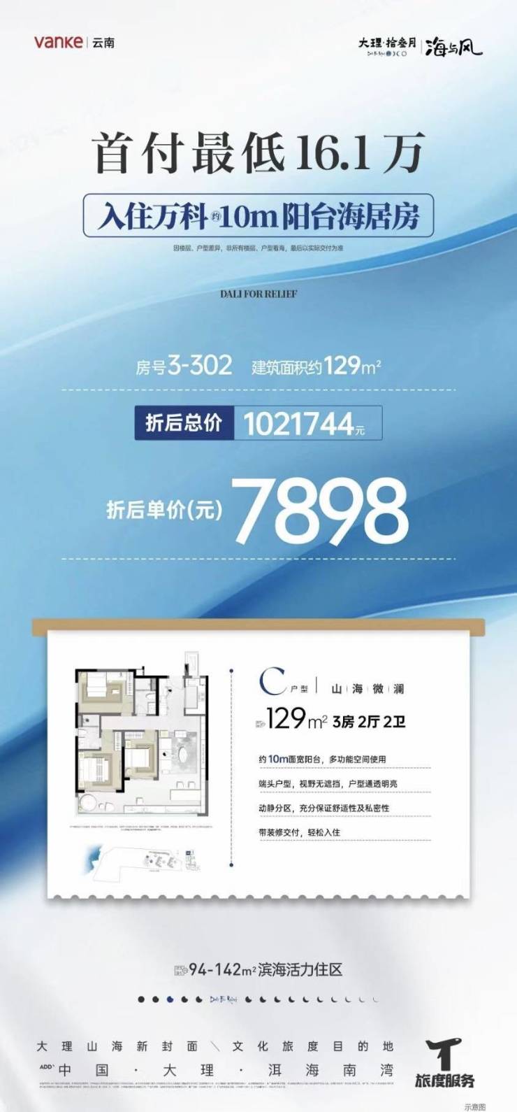 海与风,钜惠好房推荐,折后单价约7898元/㎡起,首付最低约16.1万起!关注万科·大理·拾叁月的朋友可前往售楼处现场看房,咨询房源信息请拨打电话4001560036