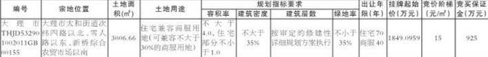 经大理市人民政府批准,受大理市自然资源局委托,大理市土地收购储备交易中心以挂牌方式出让大理市THJD532901002011GB00155号宗地的国有建设用地使用权。现将有关事项公告如下:
