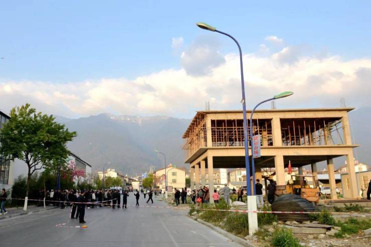近日,大理市大理镇西门社区双狮路机器轰鸣,现场启用4台挖机对11户违法建筑进行依法拆除。