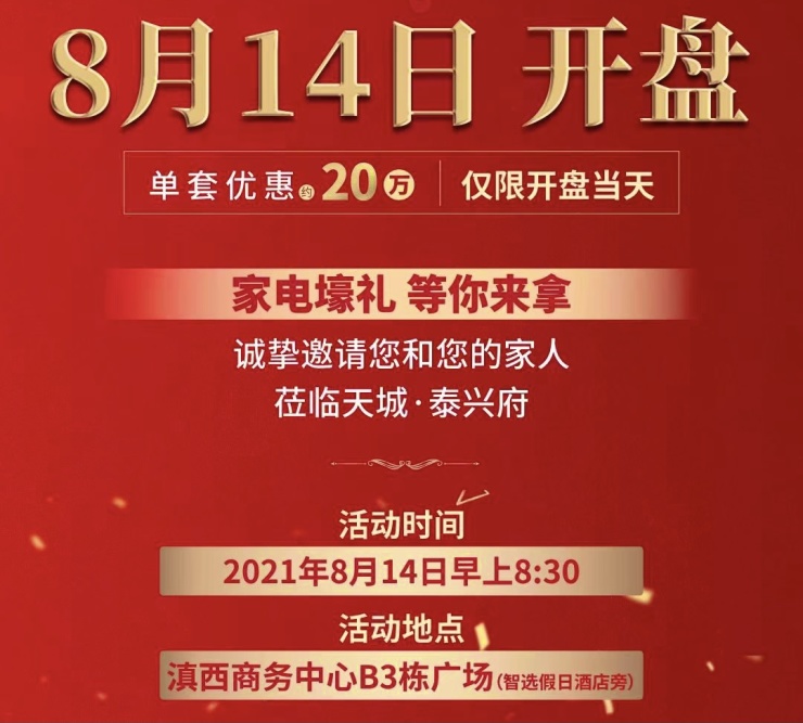 天城·泰兴府 8月14日开盘 单套优惠约20万 仅限开盘当天
