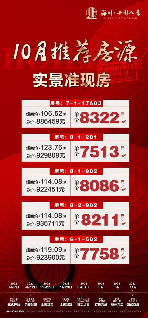 海川·十园八景,一期已全面开放,预计提前6个月交付,恭迎品鉴!海川·十园八景,实景准现房,10月推荐房源!关注海川·十园八景的朋友可前往售楼处现场看房,咨询房源信息请拨打电话400-156-0036 转 426610!