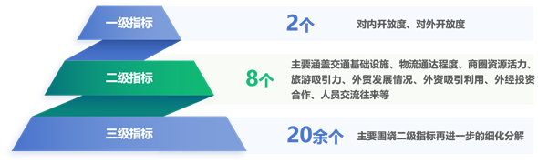 云南省国际贸易学会基于多年研究成果基础,通过广泛搜集官方渠道和各大互联网平台公开数据,研究编制“2023云南开放指数”,构建了涵盖交通基础设施、物流通达程度、商圈资源活力、旅游吸引力、外贸发展情况、外资吸引利用、外经投资合作、人员交流往来等8个方面20余项的云南开放指标体系,用于测度云南省16个州(市)的开放发展情况。