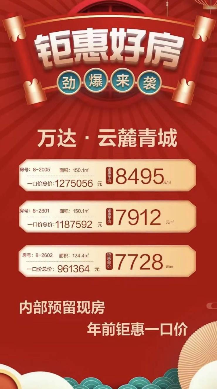 云麓青城·万达广场,钜惠好房推荐,现房销售即买即办证!关注云麓青城·万达广场的朋友可前往售楼处现场看房,咨询房源信息请拨打电话4001560036