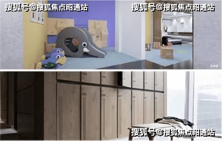 部分一层大堂采用首层架空模式,设有会客、阅读空间,并配备儿童娱乐休闲设施;地下入户大堂朵用高标准的大堂装修,设有专属收纳柜。