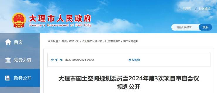 大理市国土空间规划委员会2024年第3次项目审查会议规划公开