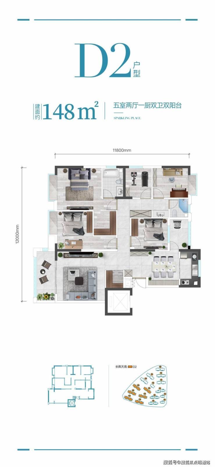2、极低梯户比及容积率:全1梯2户设计,容积率低至1.47,居住尺度宽阔,畅享舒适