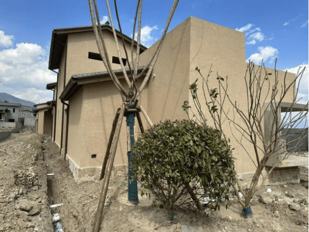 3.景观工程:已完成雨污管网、自来水、电线电缆、消防埋设;路面铺砖施工完成,室外景观苗木种植完成;