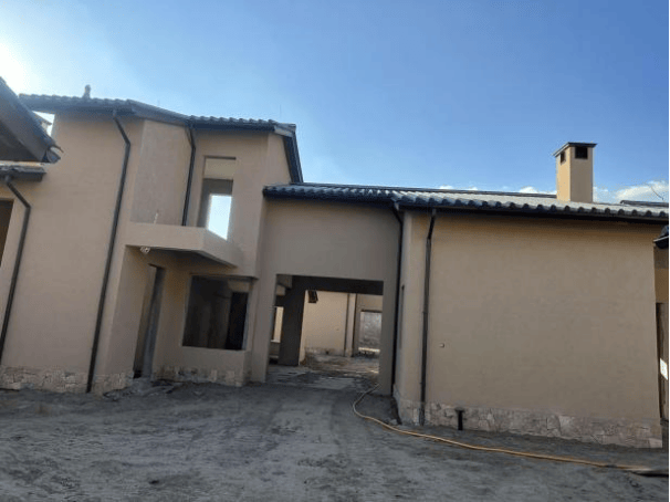 1.结构主体:南地块结构主体已封顶,砌体抹灰已完成,屋面瓦已完成,分户院墙基础完成85%,1栋挡墙浇筑完成;