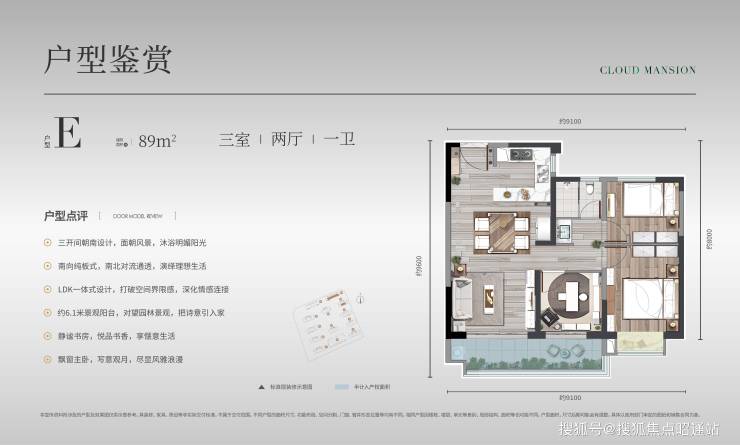 户型设计:采用南向板式设计,最大楼间距达100米,确保每户采光通风效果极佳。同时设置五大主题架空层(超1000平方米),为业主提供更多休闲空间。