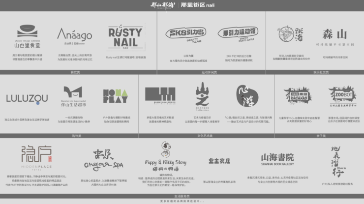 服务类:安尕SPA、 地表潜行(旅游高定)、 业主农场、 山海书院、那山那海音乐共创空间