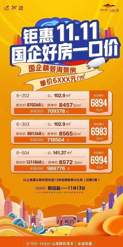 大理碧桂园山海云璟,钜惠11.11好房一口价,精装海景房单价6字头起,活动时间截止至11月13日!更多房源信息可咨询营销中心销售,联系电话400-156-0036
