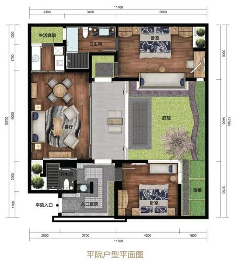 一楼有约52㎡的私家庭院,二楼有超大露台