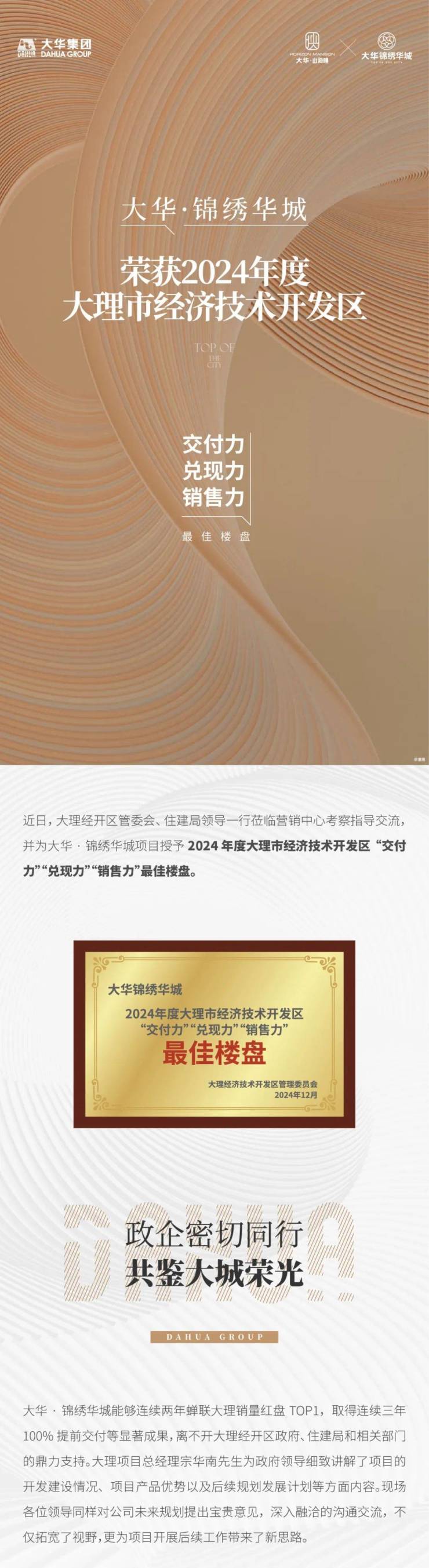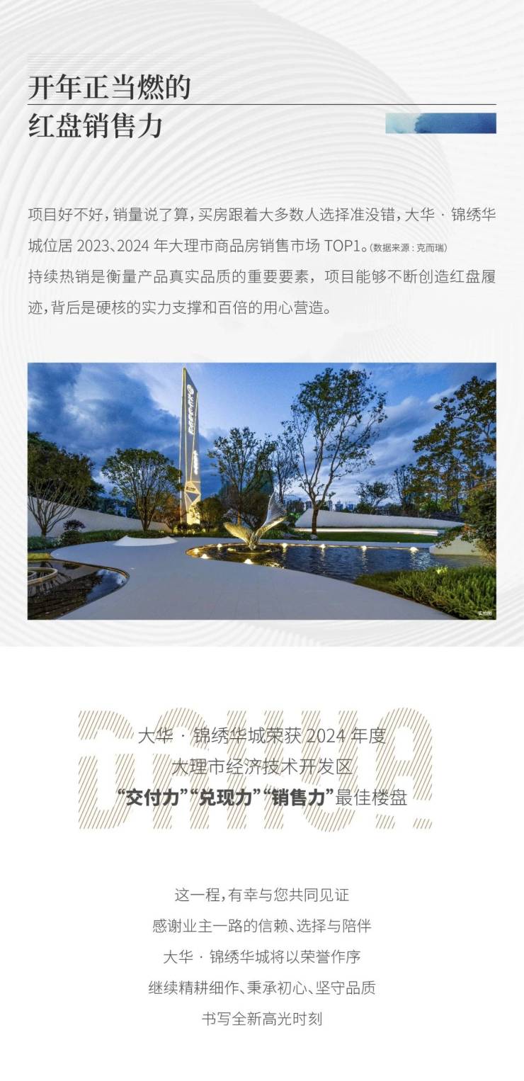 大华·锦绣华城 荣获2024年度大理市经济技术开发区“交付力”“兑现力”“销售力”最佳楼盘