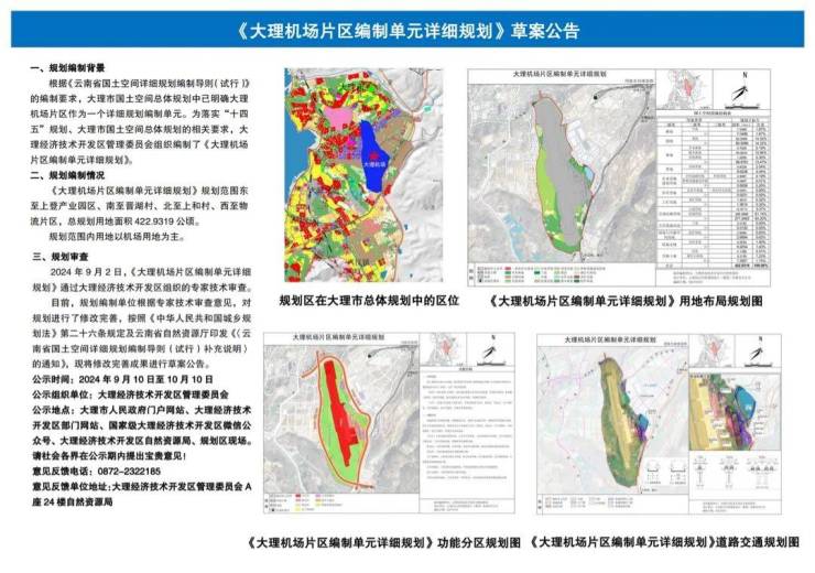 2024年9月2日,《大理机场片区编制单元详细规划》通过大理经济技术开发区组织的专家技术审查。