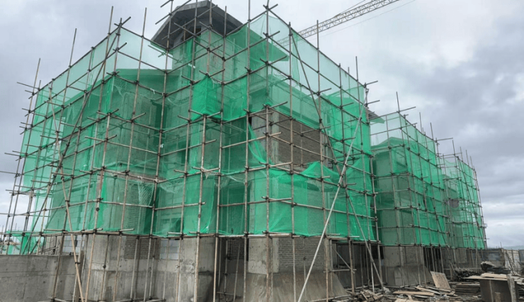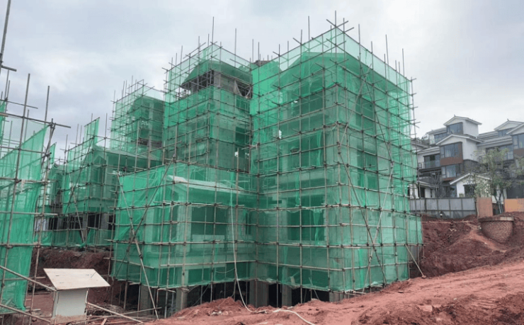 4栋主体结构、二次结构、抹灰、外涂、门窗、给排水、电气等大部分施工完成,只待(室外附属工程)施工接通。