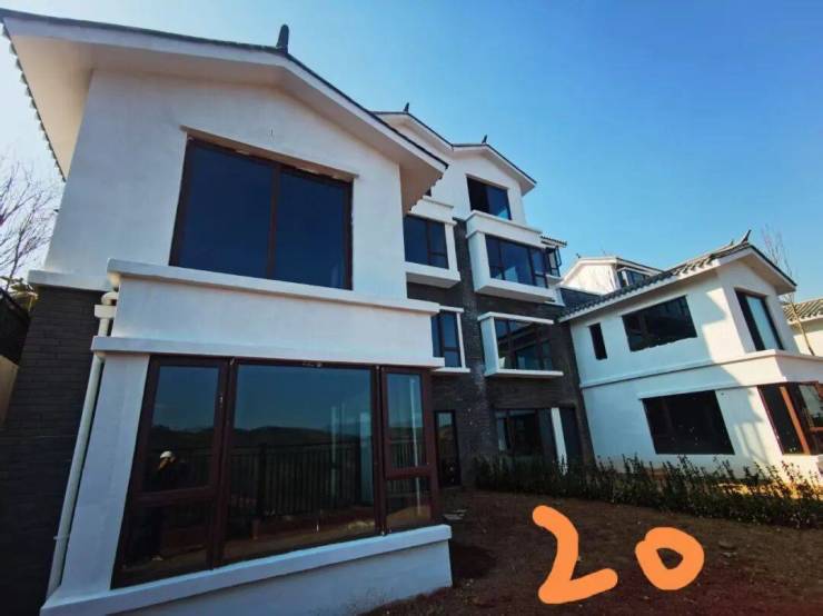 20栋主体已完成、外墙涂料已完成、屋面瓦已完成,庭院院墙完成,入户门完成。栏杆安装完成;