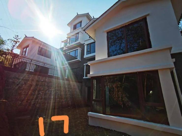 17栋主体已完成、外墙涂料已完成、屋面瓦已完成,庭院院墙完成,入户门完成。栏杆安装完成、室外管网埋设完成、室外景观工程完成,燃气管网安装完成;