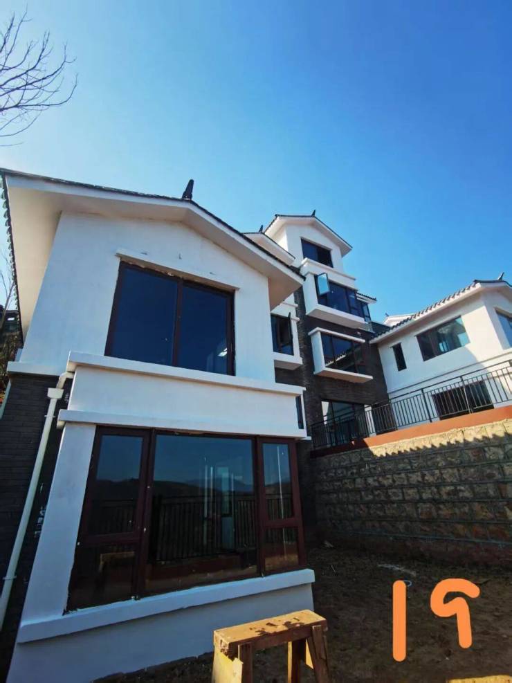 19栋主体已完成、外墙涂料已完成、屋面瓦已完成,庭院院墙完成,入户门完成。栏杆安装完成、室外管网埋设完成、室外景观完成,燃气管网安装完成;