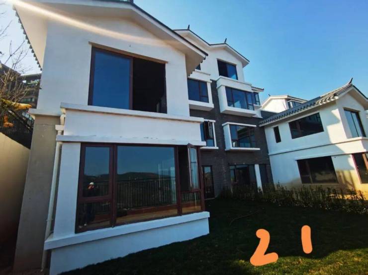 21栋主体已完成、外墙涂料已完成、屋面瓦已完成,庭院院墙完成,入户门完成、栏杆安装完成、室外管网埋设完成、室外景观完成,燃气管网安装完成;