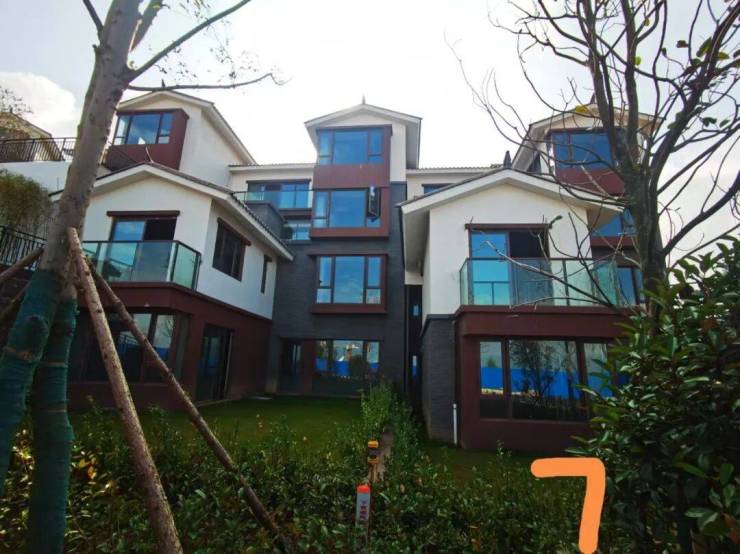 7栋主体结构、二次结构、门窗框、抹灰、给排水、电气大部分施工完成,只待(室外附属工程)施工接通。