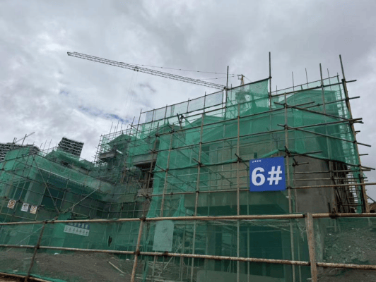 6栋主体结构、二次结构、抹灰、外涂、门窗、给排水、电气等大部分施工完成,只待(室外附属工程)施工接通。