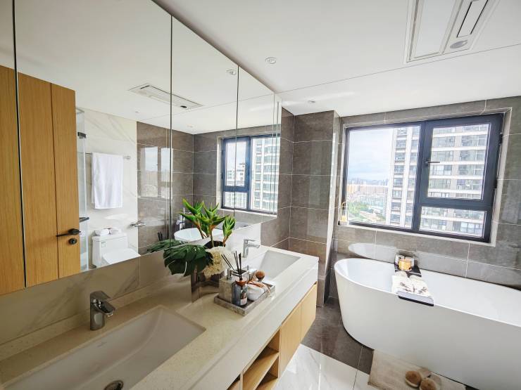 全面采用德国汉斯格雅、德国唯宝(或同档次品牌)2大世界顶尖卫浴、AO史密斯纳米级净水设施、5G全屋智能化系统、全屋中央空调、主卧浴缸等奢装平层配置