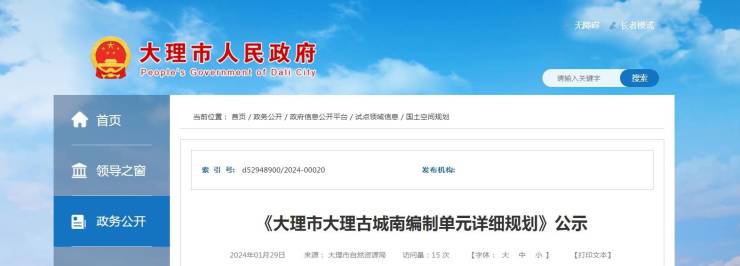 《大理市大理古城南编制单元详细规划》公示