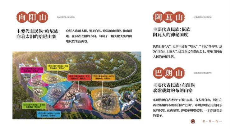 百寨:以六大山地形态为载体,营造“一山多寨,百寨相连”的大型民族融合场景,形成“山水成寨、山水成市、寨中有市、市在寨中”的寨群画卷。