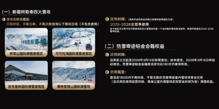 室内滑雪还不够尽兴?想体验从雪山上向下俯冲的刺激?为进一步丰富滑雪体验,昆明热雪奇迹近期推出“热雪泰滑卡”,实现“一卡双享”。购买该卡即可同时获得昆明热雪奇迹铂金会籍权益与泰旅如意卡权益,包括:昆明热雪奇迹半年无限次畅滑与新疆阿勒泰地区(2025-2026雪季)四大室外滑雪场畅滑等多种权益,让滑雪自由触手可及!即日起至2025年12月30日火热开售,让你随时切换“雪山模式”与“恒温滑雪“模式。