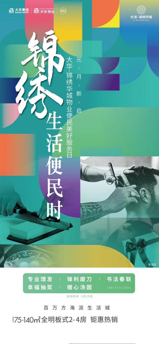 据搜狐焦点大理站获悉,大理大华·锦绣华城,建面约75-140㎡全明板式2-4房,钜惠热销。物业便民美好服务日,专业理发、书法春联、幸福抽奖、暖心汤圆,1月29日暖心开启!
