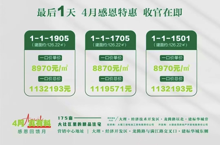大理阳光满園 最后1天 4月感恩特惠 收官在即