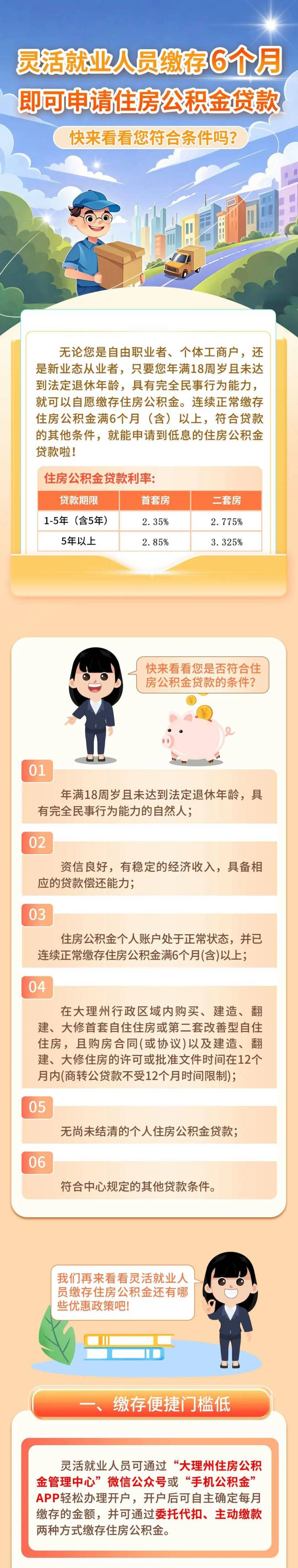 灵活就业人员缴存6个月即可申请住房公积金贷款 快来看看您符合条件吗?