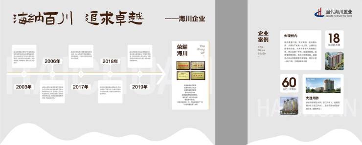 海川企业,创建于2003年,历经十九年发展,现已成为覆盖房地产开发、物业管理、建设工程施工总承包、劳务分包、项目投资(PPP、BT、BOT)、企业管理咨询、招标代理、工程咨询、工程造价编制于一体的专业化企业。