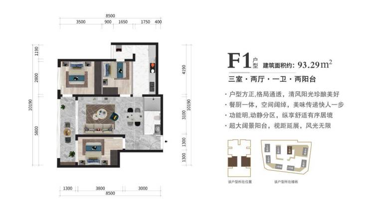 7栋加推 F1户型 建筑面积约:93.29㎡