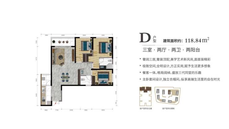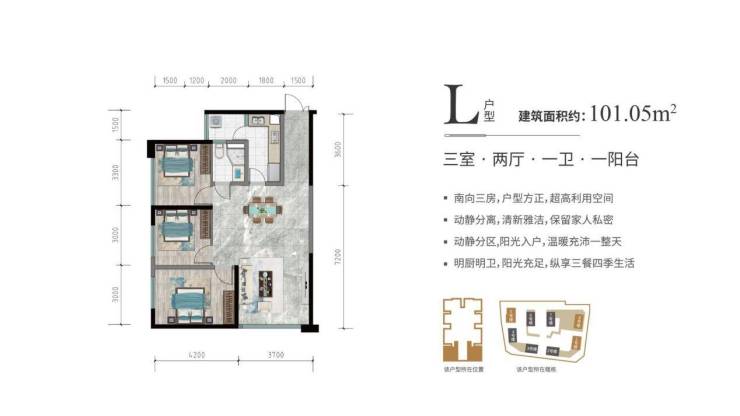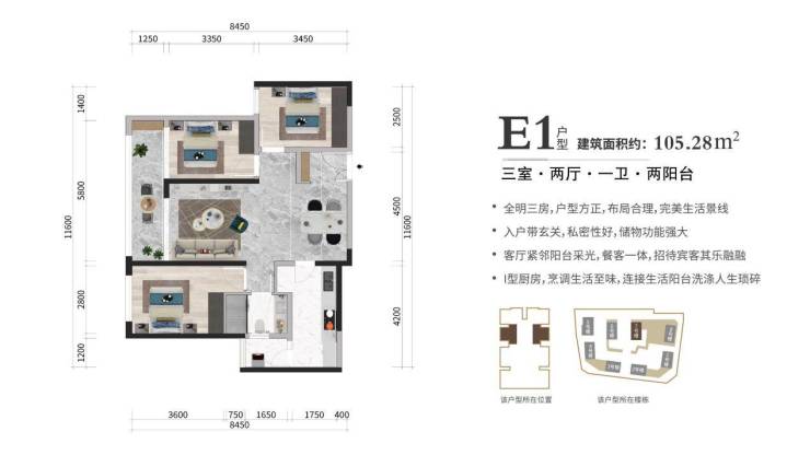 7栋加推 E1户型 建筑面积约:105.28㎡