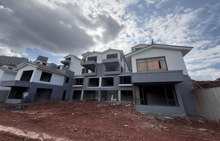 5栋主体封顶完成、砌体完成,内墙抹灰完成,外墙抹灰完成,外架拆除完成,屋面防水完成,露台防水完成,腻子完成100%,涂料完成100%,门窗玻璃安装完成,阳台栏板安装完成、小青砖完成100%,室外给水管道完成100%,入户铁门安装完成、围墙栏杆安装完成,强弱电穿线完成,庭院走道铺贴完成;